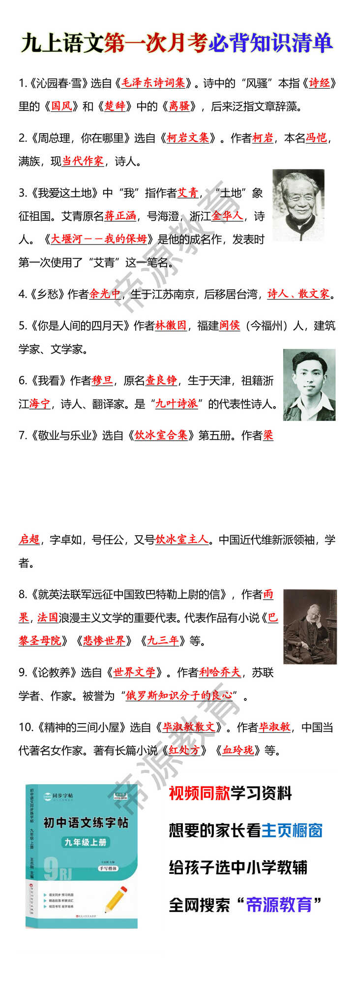 3.《我爱这土地》中“我”指作者艾青,“土地”象征祖国。艾青原名蒋正涵,号海澄,浙江金华人,诗人。《大堰河——我的保姆》是他的成名作,发表时第一次使用了“艾青”这一笔名。