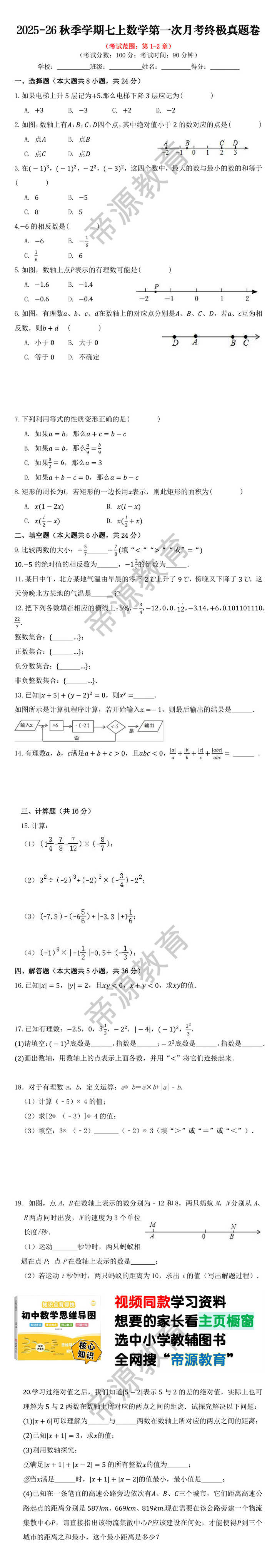 2025-26秋季学期七上数学第一次月考终极真题卷