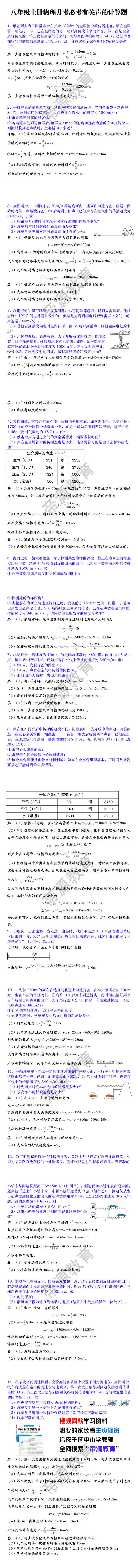 1.甲乙两人为了测量声音在长为1326m的金属管中的传播速度,甲在金属管一端敲打一下,乙在金属管的另一端听到两次传来的声音,第一次是由金属管传来的,第二次是由空气传来的,测得两次声响相隔3.645s。已知声音在空气中的传播速度是340m/s,则声音在这根金属管中的传播速度是多少?
